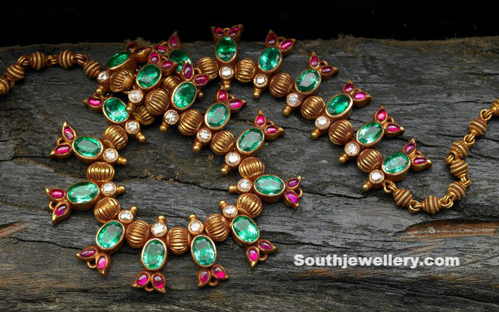 22 carat gold antique mango mala with Ganesh pendant studded with kundans by P Satyanarayan and Sons Jewellers.