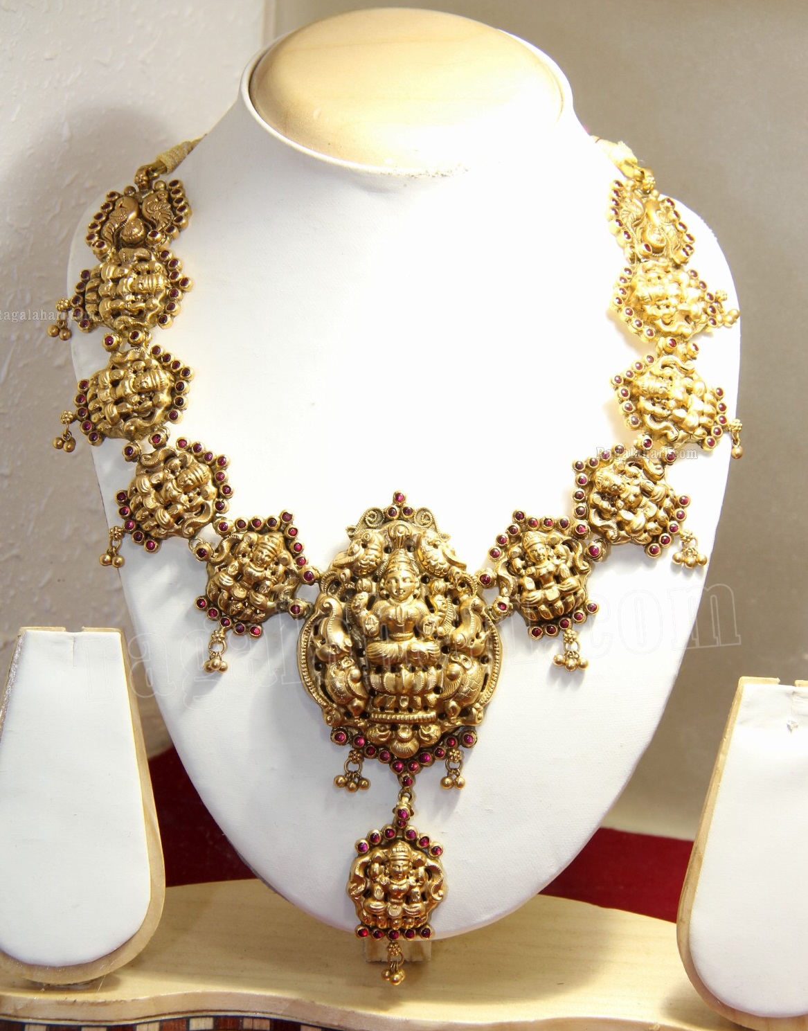 Jewellery DesignsNakshi JewelleryTemple Jewellery Heavy Lakshmi Temple Jewellery Jul 20, 2013 FacebookTwitterPinterestWhatsApp Heavy temple necklace with Lakshmi clasps and Lakshmi pendant