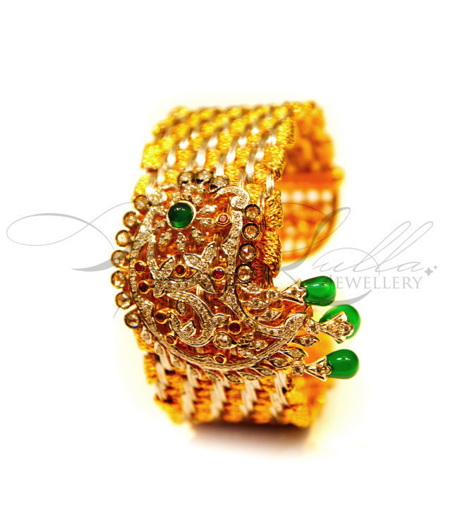 BraceletDiamond BanglesJewellery Designs Stunning Bracelet Studded With Diamonds Aug 27, 2013 FacebookTwitterPinterestWhatsApp Gold bracelet studded with diamonds, emeralds and rubies.