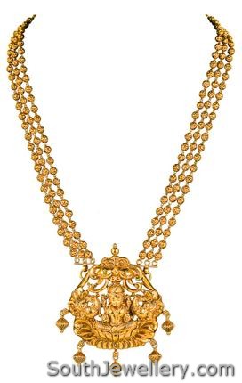 Gold Long ChainJewellery Designs Gold Long Chain with Lakshmi Pendant Sep 10, 2013 FacebookTwitterPinterestWhatsApp Beaded gold long chain with attached Lakshmi pendant.