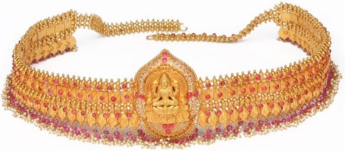 Andrea Jeremiah in an antique gold guttapusalu haram with Goddess Lakshmi pendant paired with antique jhumkas.