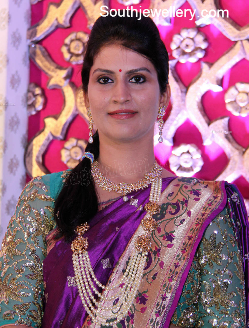 Diamond NecklaceJewellery DesignsPearls Haram Pearls Haram with Lakshmi Clasps Sep 5, 2013 FacebookTwitterPinterestWhatsApp Celebrity in diamond necklace and earrings and long pearls haram with multi strings attached to Lakshmi clasps.