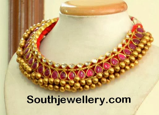 Four line pearls mala featuring kundan side pendants and a central square shaped pendant studded with kundans.
