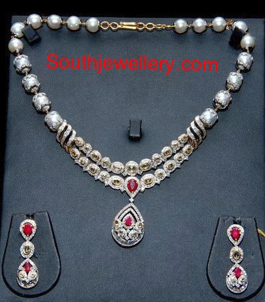 18 carat gold diamond emerald necklace by Mangatrai Pearls And Jewellers, Jubilee Hills at 36.