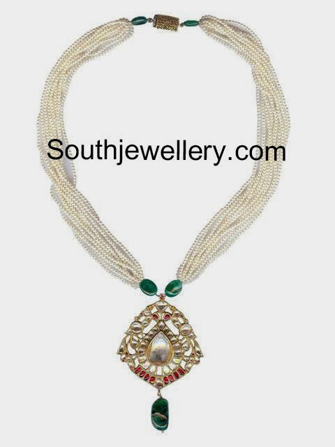 22k gold south sea pearl necklace with peacock puligoru pendant by Seeta jewellers.