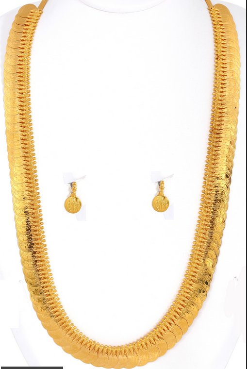 Gold Long ChainJewellery DesignsKasu HaramKasu malaKasula peru Simple Gold Kasu Mala Jan 4, 2014 FacebookTwitterPinterestWhatsApp Plain gold Lakshmi kasumala, paired up with matching simple earrings.
