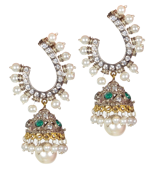 Diamond earringsJewellery Designs Diamond Jhumkas Apr 10, 2014 FacebookTwitterPinterestWhatsApp Stunning diamond jhumkas in white and yellow gold studded with diamonds, emeralds and pearls.