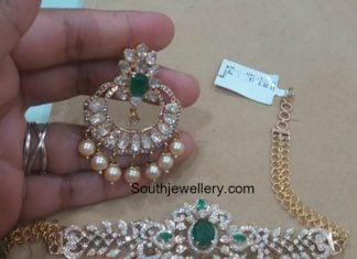 Diamond emerald armlet cum choker paired with matching polki chandbalis by Vajra Jewelry, Hyderabad.