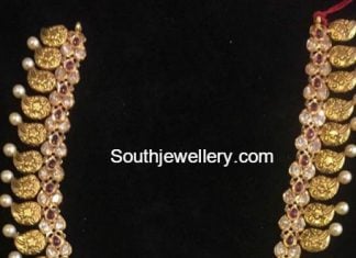 22 carat gold mango haram studded with uncut diamonds, rubies and south sea pearls.