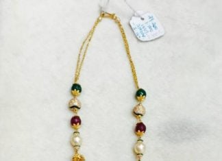 PolkiPolki Diamond NecklaceUncut Diamond Necklace Polki diamond necklace Nov 18, 2022 FacebookTwitterPinterestWhatsApp 22k gold polki diamond necklace made of polkis, emerald beads and pearls by Pinaki Jewellers.