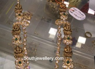22 carat gold antique Lakshmi haram studded with uncut diamonds and emeralds by Premraj Shantilal Jewellers.